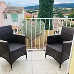 Η Mazet Renove Golfe De St Tropez Βίλα Cogolin διαθέτει βεράντα με θέα στο βουνό, καθώς και έχει πισίνα.